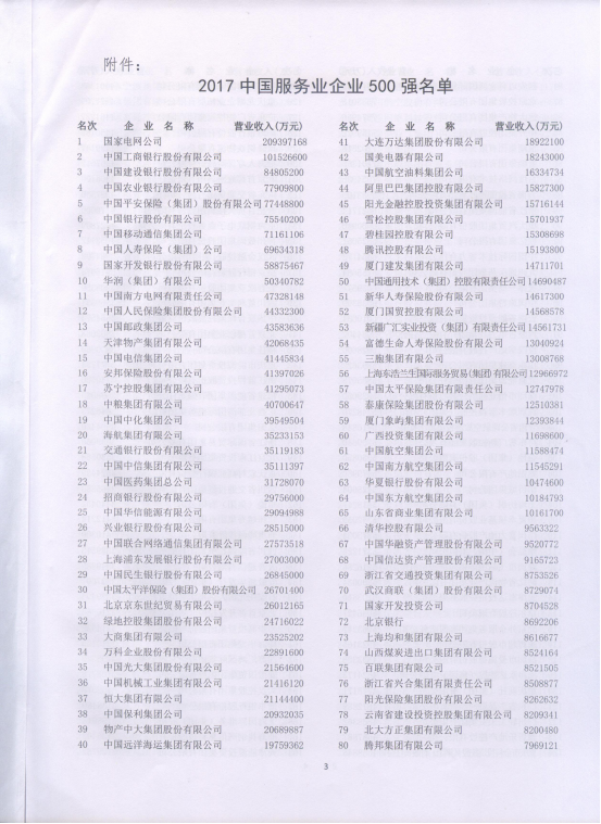 集團(tuán)再次入圍“2017中國(guó)服務(wù)業(yè)企業(yè)500強(qiáng)”