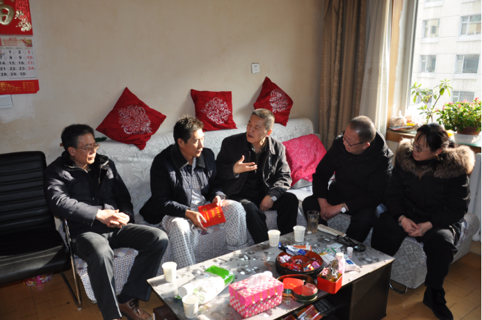 在退休老黨員、老勞模毛敏生和馮芳才家中,王玉輝書(shū)記與他們拉起家常,詢問(wèn)他們的身體狀況和家庭情況,感謝他們?yōu)榍嗪N锂a(chǎn)發(fā)展所做出的努力和貢獻(xiàn),并代表集團(tuán)黨委送上組織的關(guān)懷和美好新春祝福。
