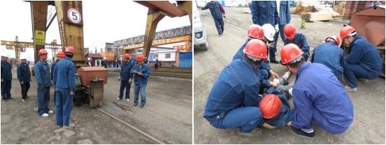 四是組織開展安全技能崗練兵活動(dòng)。為提高公司青年員工的安全生產(chǎn)意識和發(fā)生機(jī)械傷害時(shí)的應(yīng)急處置能力和自救能力,保障員工生命和公司的財(cái)產(chǎn)安全,公司團(tuán)支部聯(lián)合公司安委辦、安全保衛(wèi)部及裝卸作業(yè)部組織開展了2019年"安全生產(chǎn)月"機(jī)械傷害事故應(yīng)急演練活動(dòng)。通過本次演練,增強(qiáng)了裝卸人員的安全生產(chǎn)意識,對機(jī)械傷害安全常識起到了警示教育作用。
